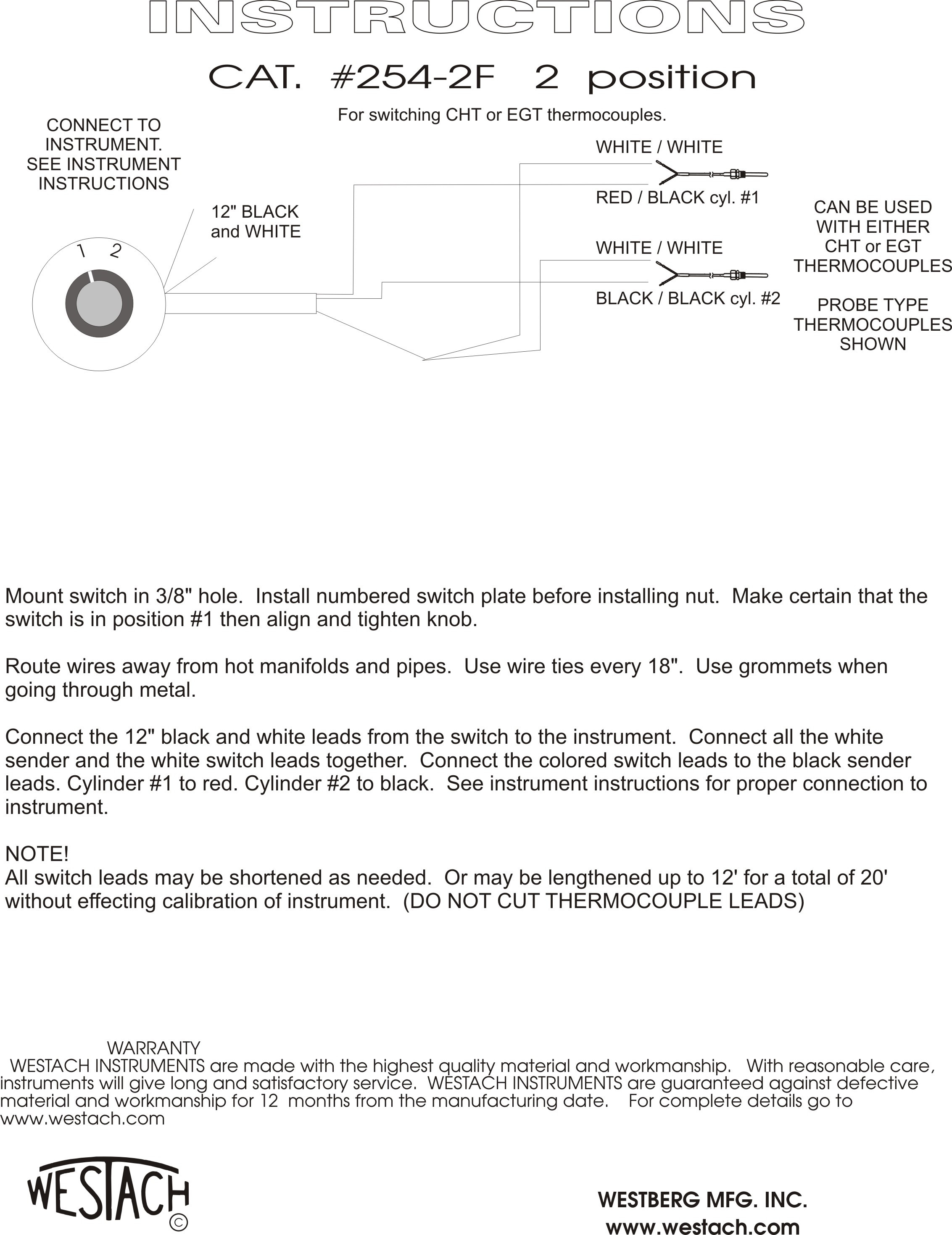 2 position switch, rotary, with 8' leads, Non-polarized connections, Use with 712 series thermocouples sold seperately
